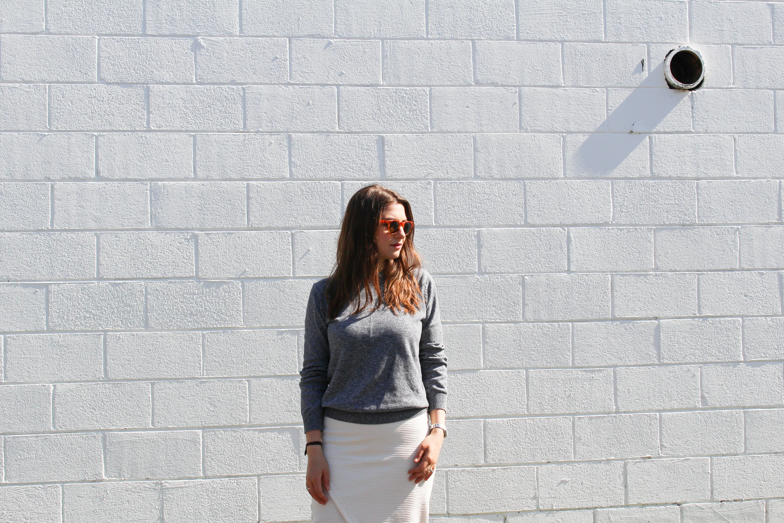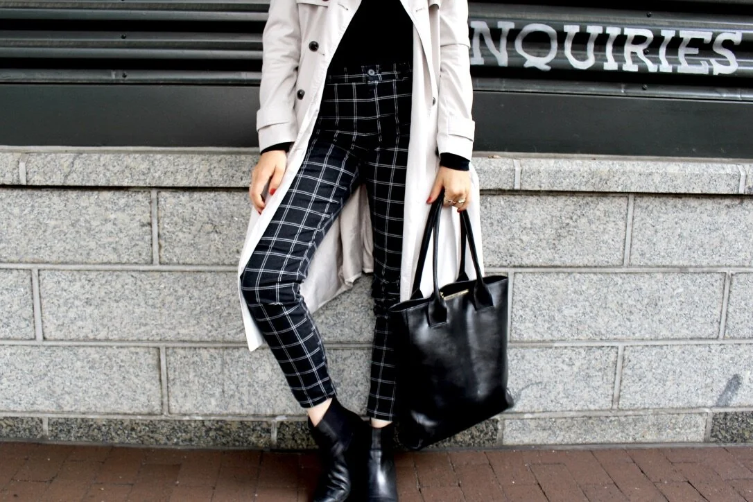 Playing around with fits and fabrics is really fun with a few go-to shapes. Skinny jeans are always in rotation because of how well they tuck into boots, and even when they scrunch a bit at the ankles. The wider leg cropped jean is having its moment, which is a super fun switch to try, especially in the high-waisted styles. Leggings can be pants when they're a ponte fabric (think thicker and less see-through), making them perfect for layering under tunics and dresses when you panty hose won’t cut it. Skirts are where I like to have a bit of fun with prints, different textures, and shapes. And it wouldn’t be Fall or Winter for me without some cozy velour joggers to change into after a long day.